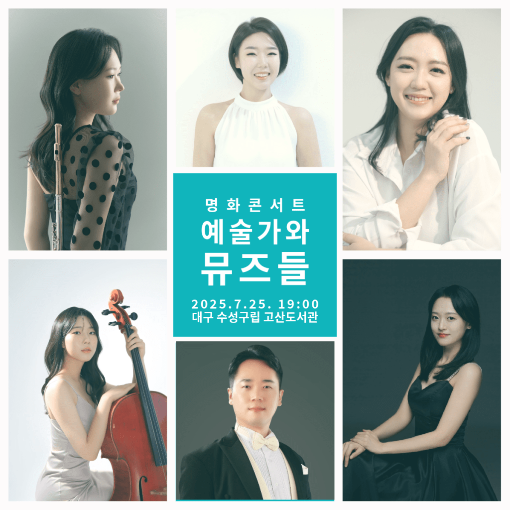 #클래식공연 #명화콘서트 #예술가와뮤즈들 #도슨트라노 #이채희 #그림과음악 #클래식라이브 #피아졸라 #쇼스타코비치 #푸치니 #레날도한 #스토리텔링콘서트 #대구공연 #수성구콘서트 #고산도서관 #VOCES #보쎄스 #유지혜소프라노 #김우진바리톤 #김주하피아노 #임채원플루트 #이다현첼로 #7월25일공연 #도서관공연 #문화공연 #무료공연 #주말공연추천